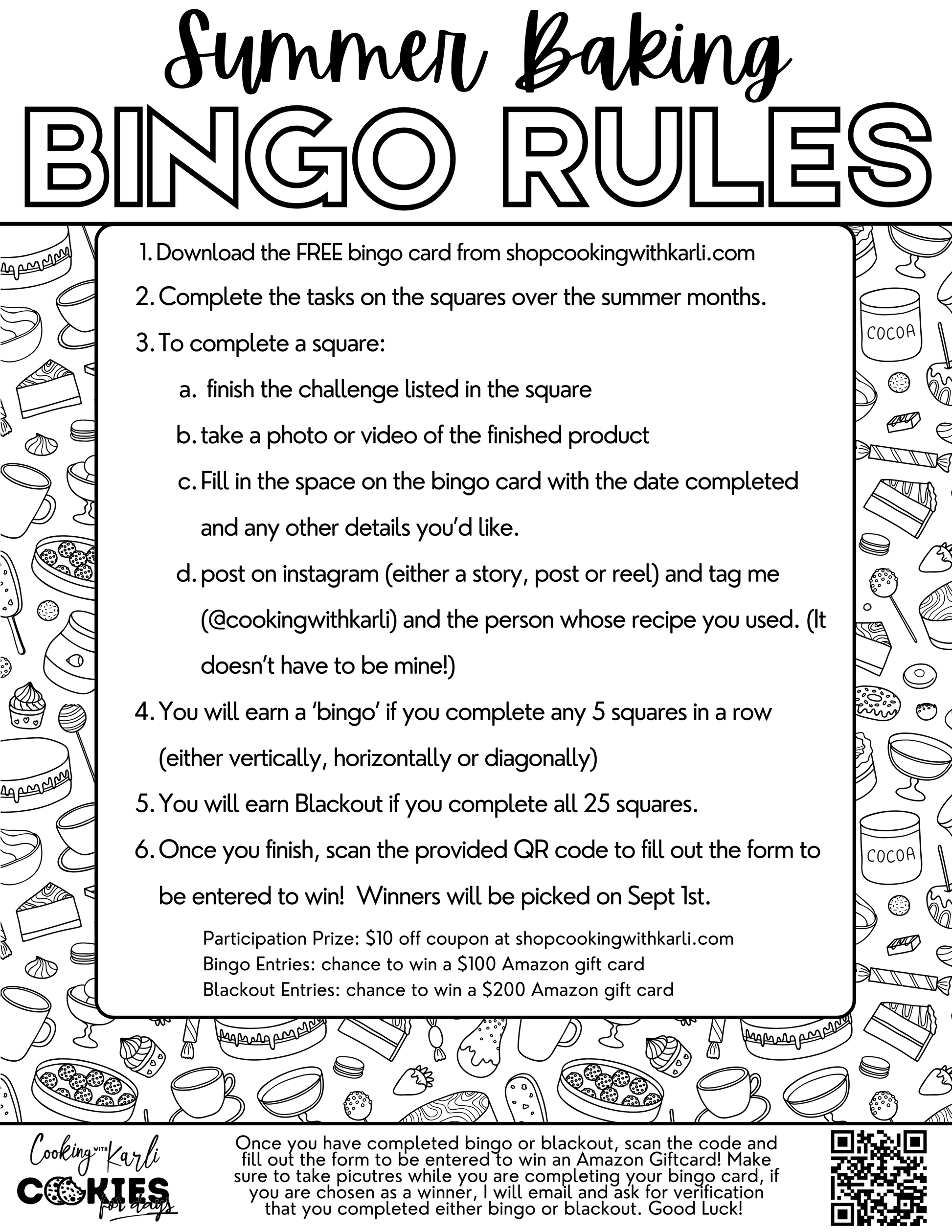 - Download the FREE bingo card from shopcookingwithkarli.com *